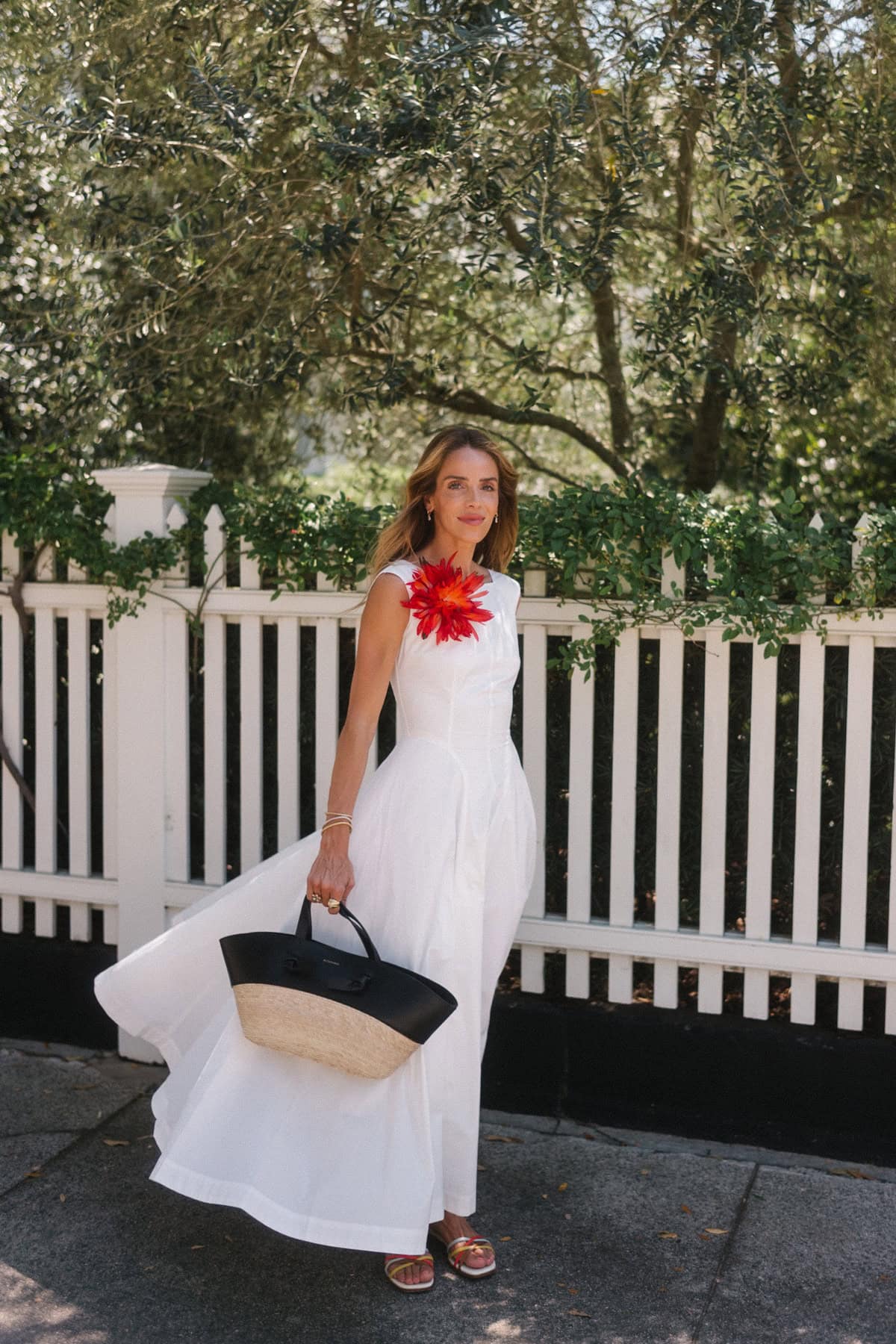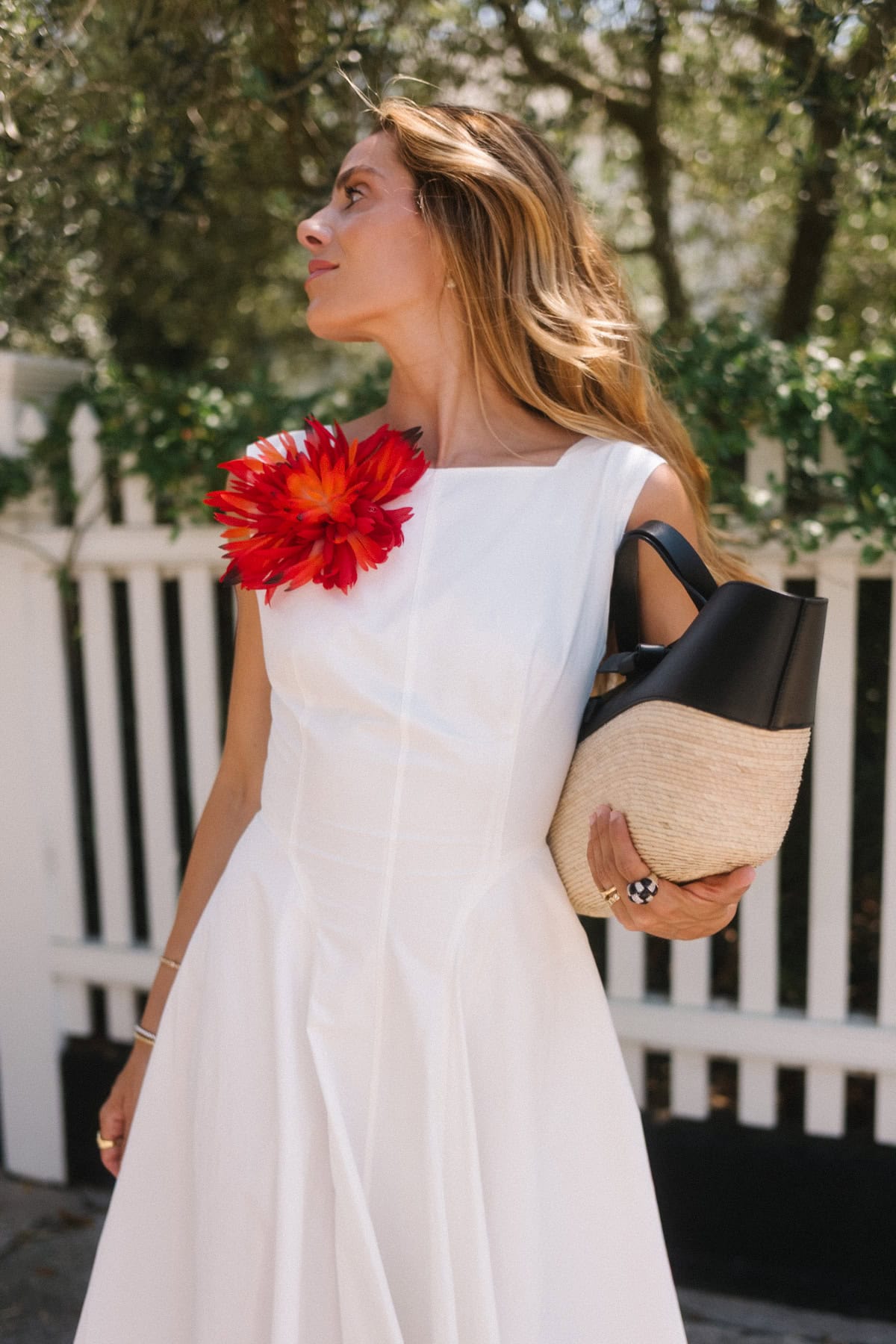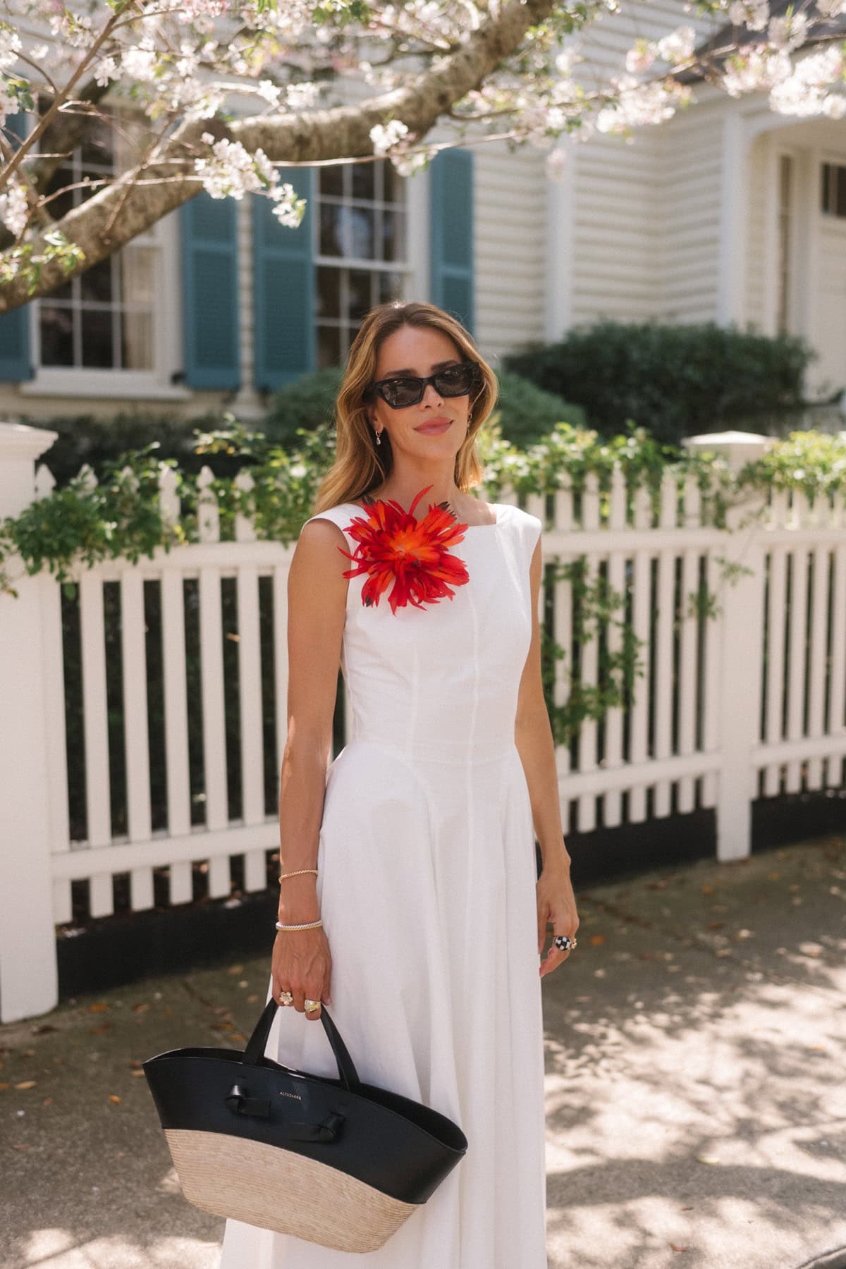 Doen Dress, Chanel Brooch (similar here and here), JB x Margaux Sandals, Altuzarra Tote