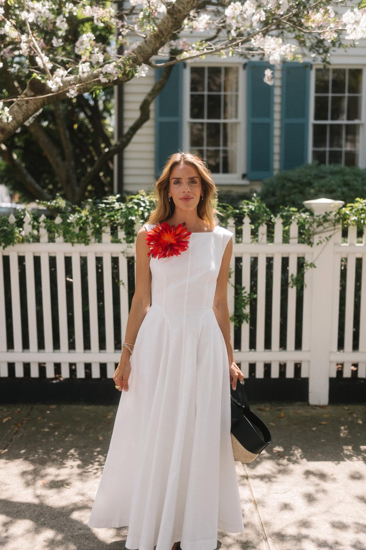 That is really the balance I like here: white dresses that feel classic, finished with red accessories that bring in color, polish, and a clearer point of view. It is one of the best combinations for spring.