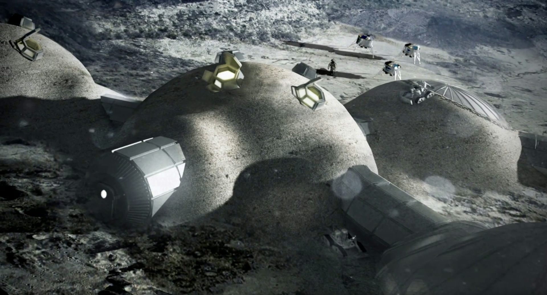 Lunar regolith (soil) could be used to create structures that protect habitats from radiation and micrometeoroids. Foster + Partners