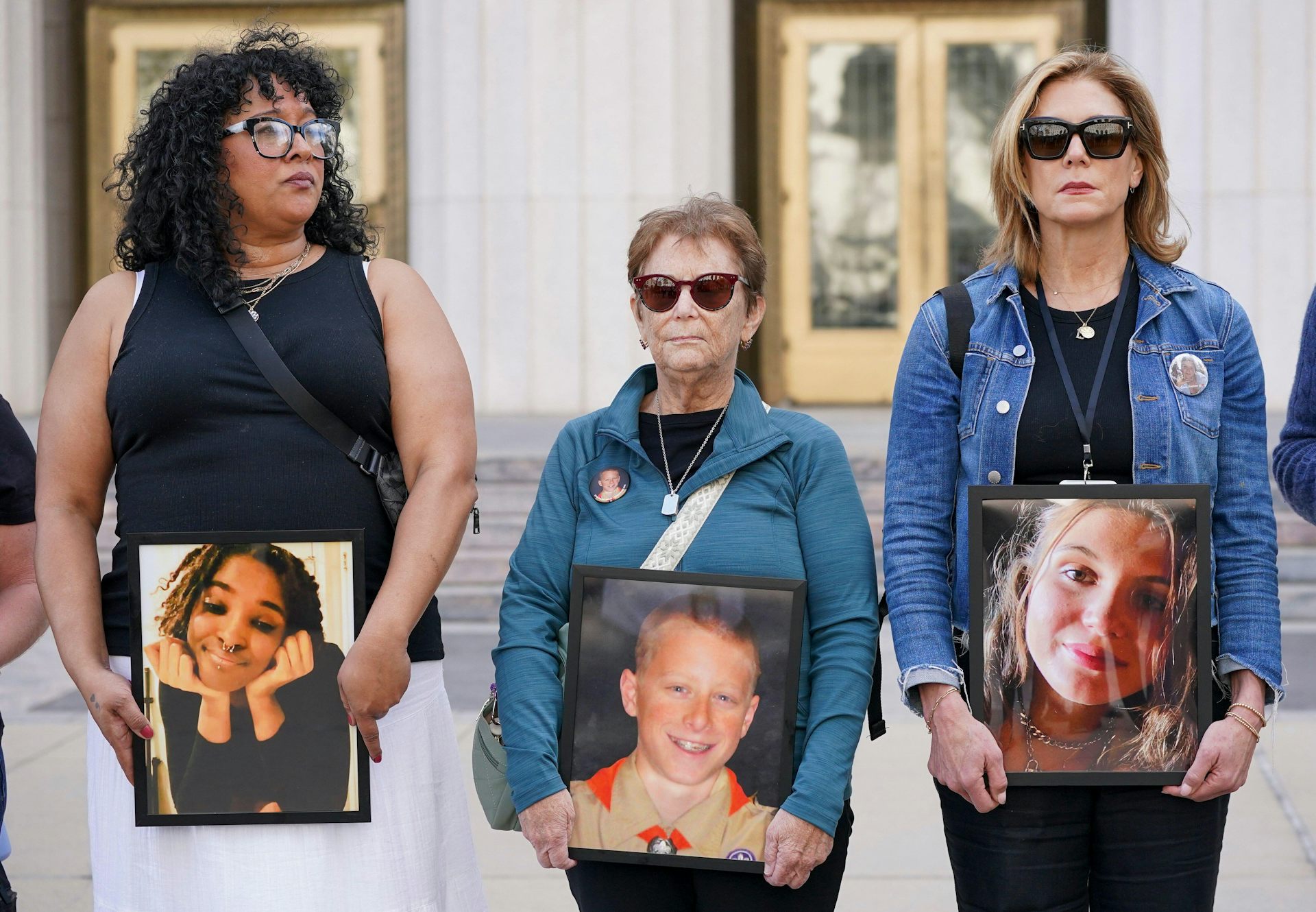Bereaved parents hold a vigil for their children outside LA’s Superior Court on February 5 2026, ahead of the social media addiction trial. Jordan Strauss/AP/Alamy