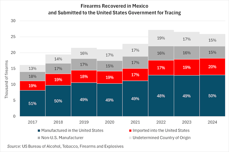 The Mexican government filed a lawsuit in 2021 that sought to hold American gun makers accountable for their contribution to the rising violence in Mexico. While the lawsuit was rejected unanimously by the US supreme court in 2025, the Mexican authorities have continued to press their US counterparts to take firmer action against arms smuggling from north of the border.