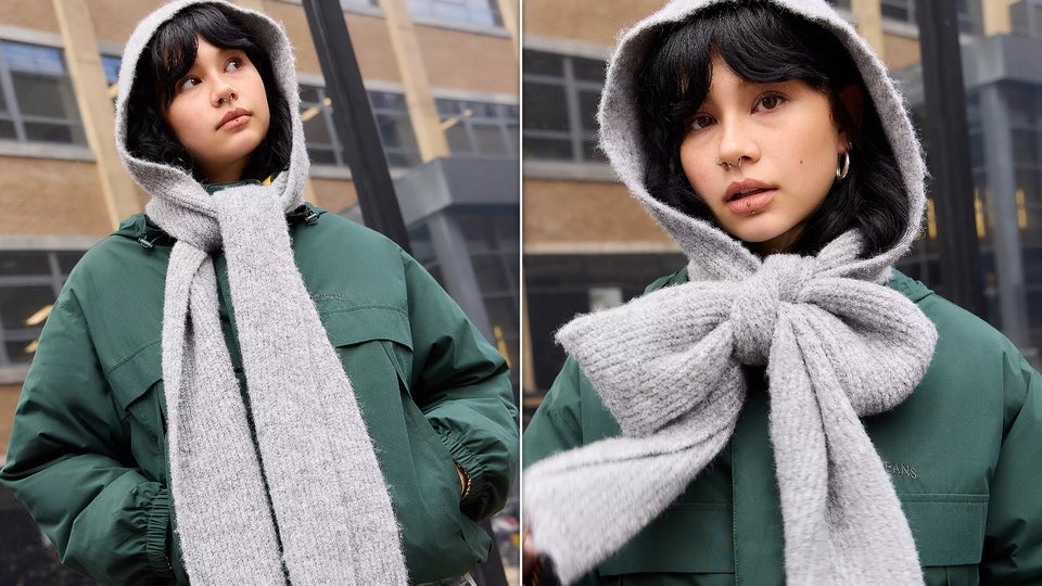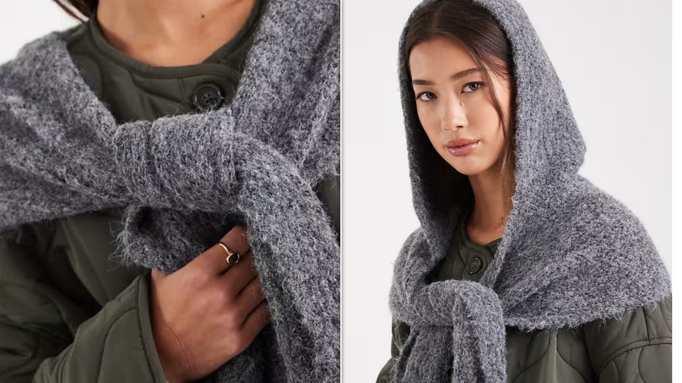 This hooded scarf has ample room to keep your shoulders warm, too.