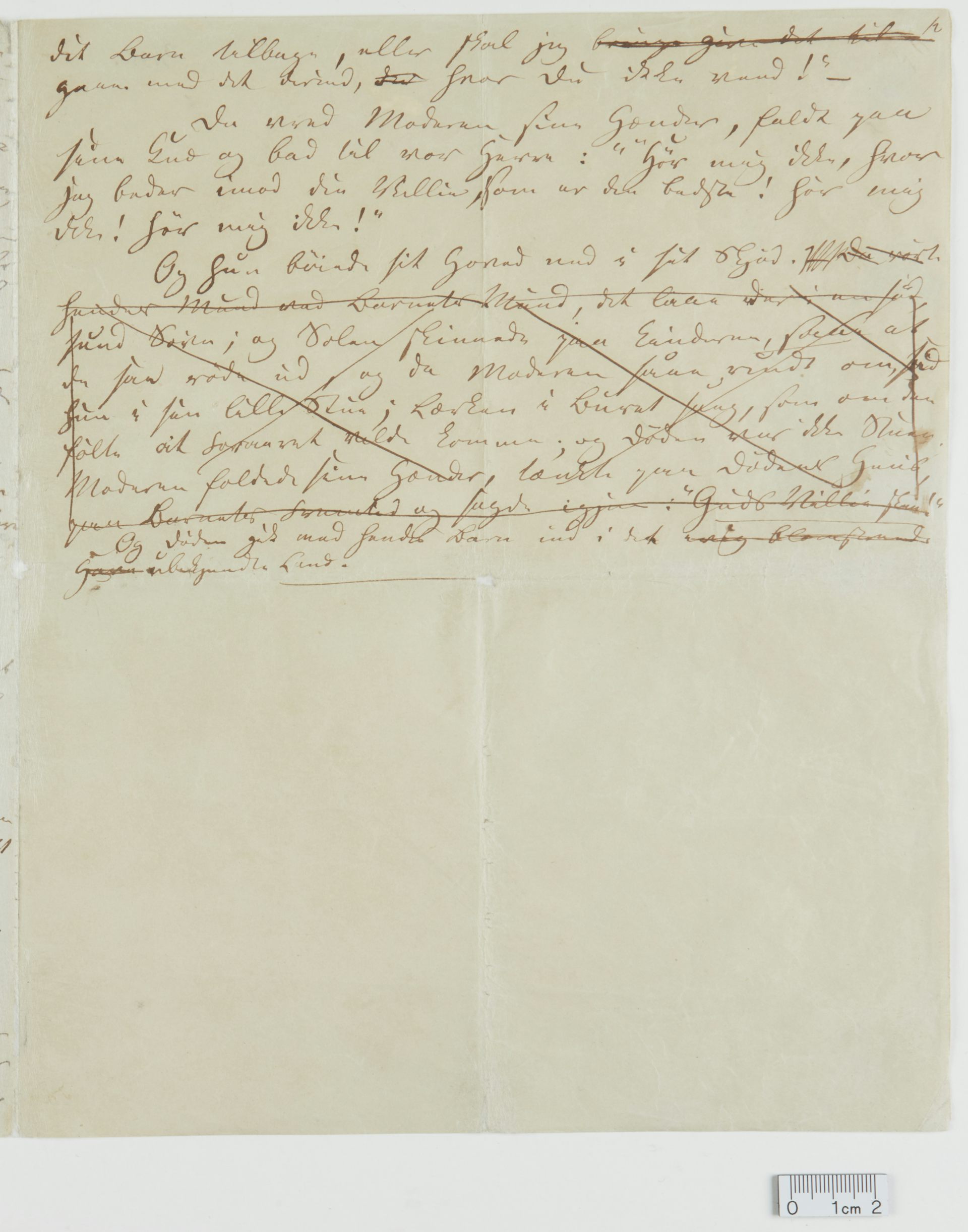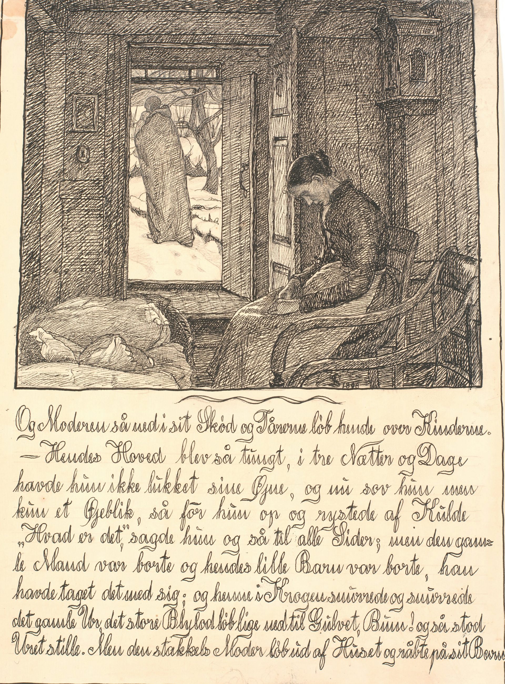 Although Andersen had written about dying children before, he struggled with the ending of this story, even in the handwritten copy he delivered to the printer. His first version was what you might call a happy ending: the mother wakes to find it was all a dream. He immediately crossed this out and replaced it with: “And Death went with her child into the ever-flowering garden”.