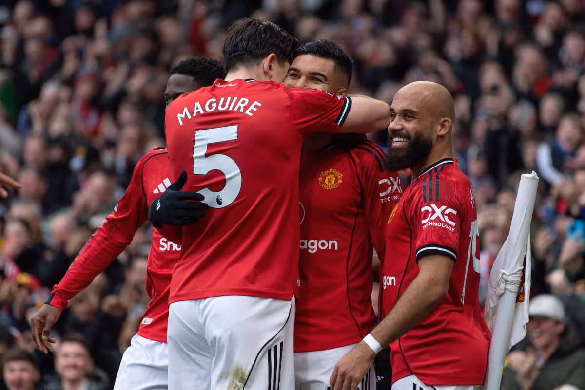Man Utd defender Harry Maguire is out of contract at the end of the season and should be given a new deal. Maguire embraces Casemiro.(Image: 2026...