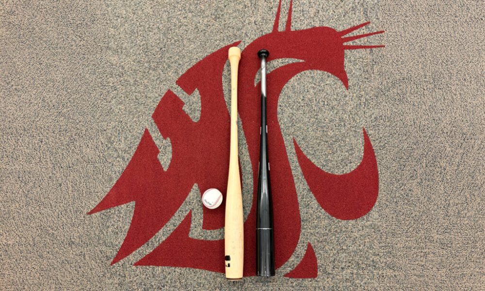 A research team determined that the torpedo bat, left, and traditional bat perform equally well in hitting power with only a slight difference in the location...