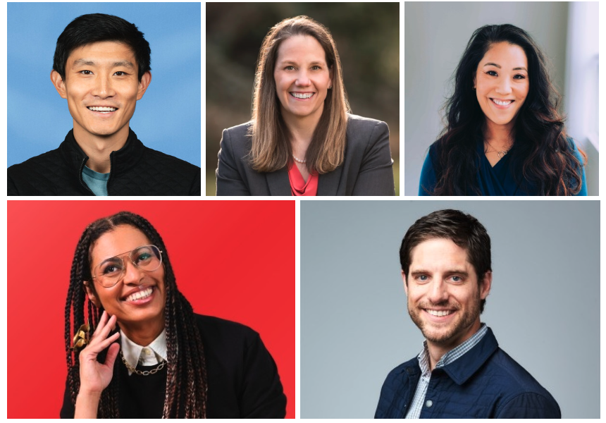 The 2026 GeekWire Award CEO of the Year finalists, clockwise from top left: Tony Huang, Possible Finance; Shelia Stafford, TeamSense; Karen Huh, Zucca; Luis Poggi, HouseWhisper;...