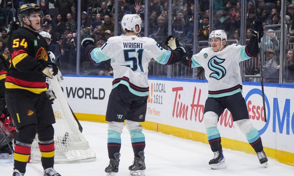 McMann was playing his first game in a Kraken jersey after Seattle acquired him from the Toronto Maple Leafs ahead of the NHL trade deadline on...