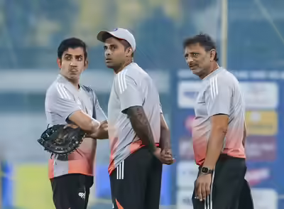 India’s captain Suryakumar Yadav, center, with head coach Gautam Gambhir, left, and batting coach Sithanshu Kotak (PTI Photo/Shailendra Bhojak) NEW DELHI: In the last year, coach...