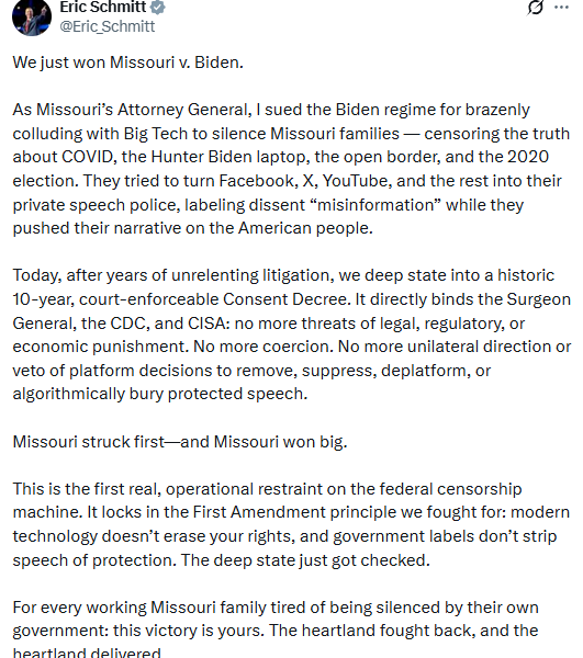 Last week, Senator Eric Schmitt of Missouri got into a heated exchange during a Senate hearing with Stanford’s Daphne Keller. Schmitt, who, as Missouri’s Attorney General,...