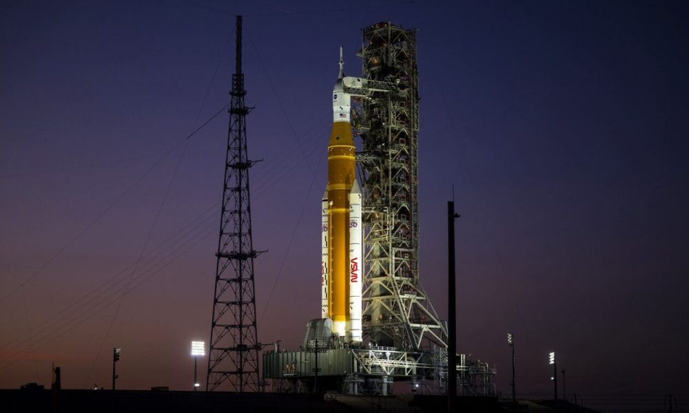 NASA’s Space Launch System rocket stands on its Florida launch pad. (NASA Photo / Aubrey Gemignani) NASA counted down to T-minus 29 seconds tonight during a...
