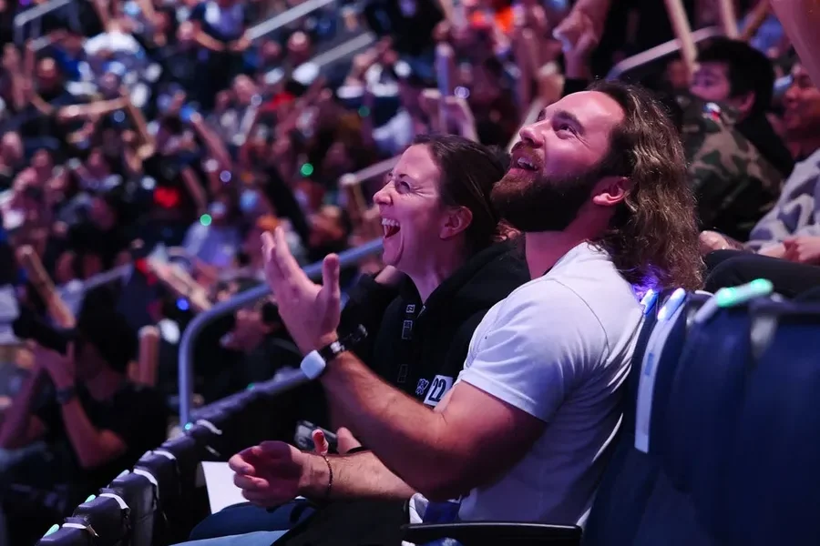 Nov 5, 2022; San Francisco, California, USA; Fans react during the League of Legends World Championships between T1 and DRX at Chase Center. Mandatory Credit: Kelley...