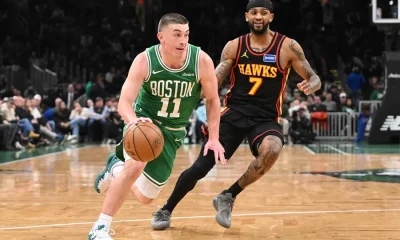 Jan 28, 2026; Boston, Massachusetts, USA; Boston Celtics guard Payton Pritchard (11) drives to the basket against the Atlanta Hawks during the second half at the...