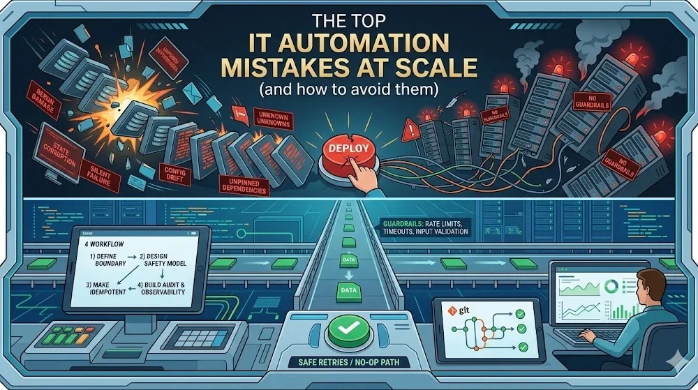 IT automation is supposed to reduce risk, speed delivery, and shrink operational overhead—but in real environments, it can also amplify mistakes, spread misconfigurations faster, and create...