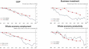 - Lower investment growth cumulating to a 12% shortfall in the level of business investment by 2023/24.