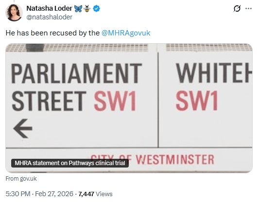 It was particularly curious given that Prof George had NOT even been employed by the Medicines and Healthcare Regulatory Authority at the time – as Newman semi-accurately noted, he only took the role last month after being appointed in November 2025.