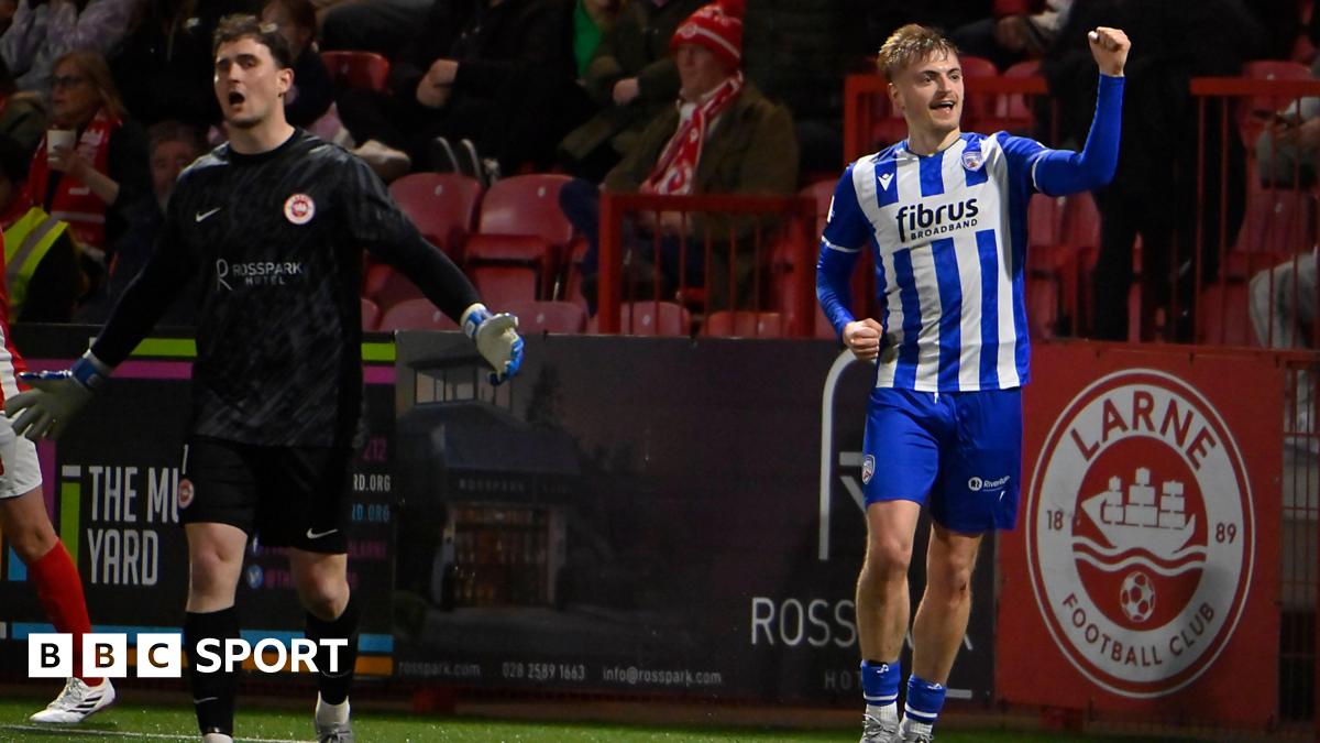 Irish Premiership: Ten-man Larne lose as Glentoran win to narrow gap at top