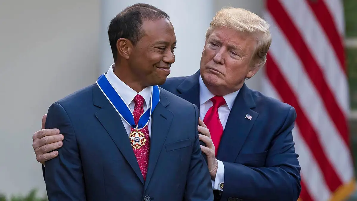 Woods replied: “Yeah, I was just talking to the president.”
