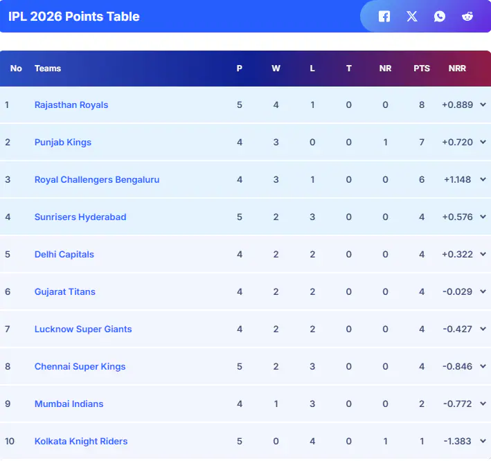 CSK Outclass KKR To Climb Above MI In Latest IPL 2026 Points Table