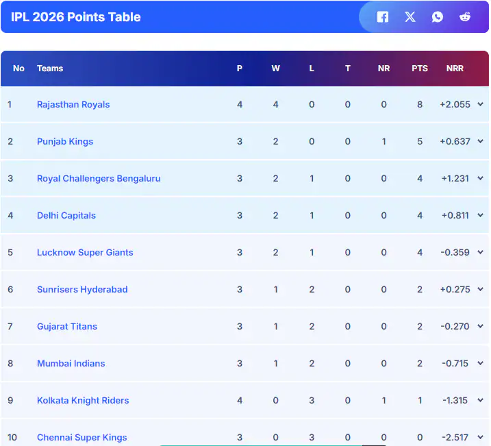 The sixth over alone produced 24 runs, underlining RR’s dominance.This effort placed RR among the top Powerplay scores in IPL history, just behind some explosive totals by Sunrisers Hyderabad and Kolkata Knight Riders. Highest Powerplay totals in IPL