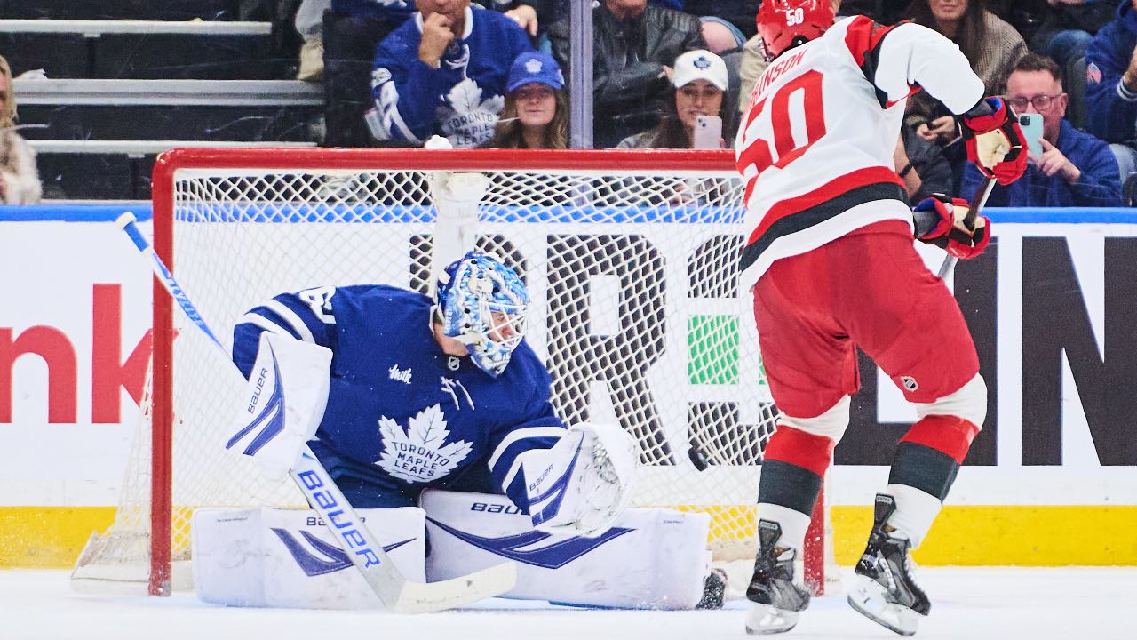 Robinson scored on a second-period penalty shot after being hooked on a breakaway by Maple Leafs defenceman Troy Stecher. The Carolina winger moved in on Woll as a sleepy Scotiabank Arena came to life, and fired his 12th goal of the campaign past the netminder’s glove.