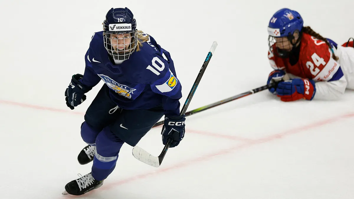 Finland’s Elisa Holopainen celebrates scoring their third goal on April 20, 2025.(REUTERS/David W Cerny)