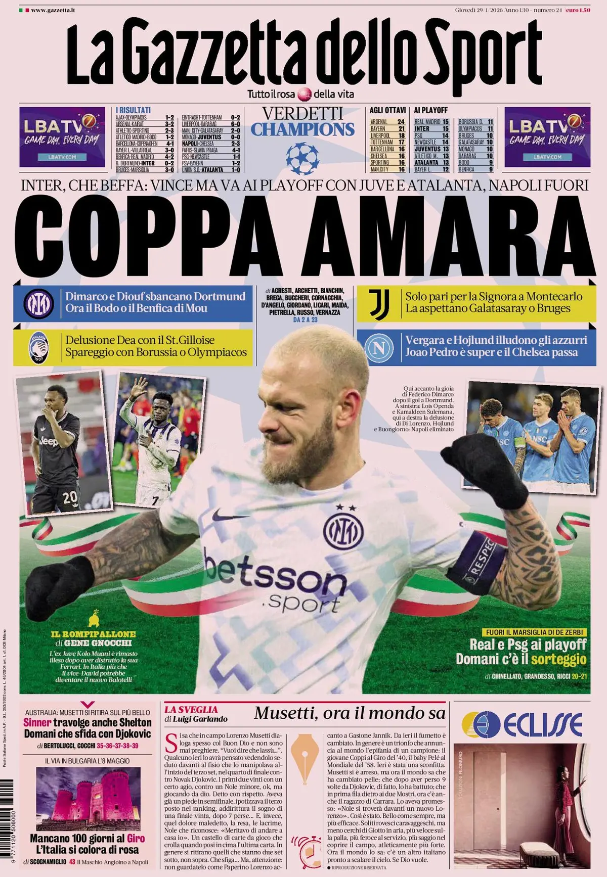 Dimarco and Diouf put their names on the blitz in Dortmund, but the Nerazzurri remain out of the G8. Now Benfica or Bodo. Chelsea’s comeback at the Maradona, Conte eliminated. Atalanta fall in Belgium; Olympiakos or Borussia in the play-off.