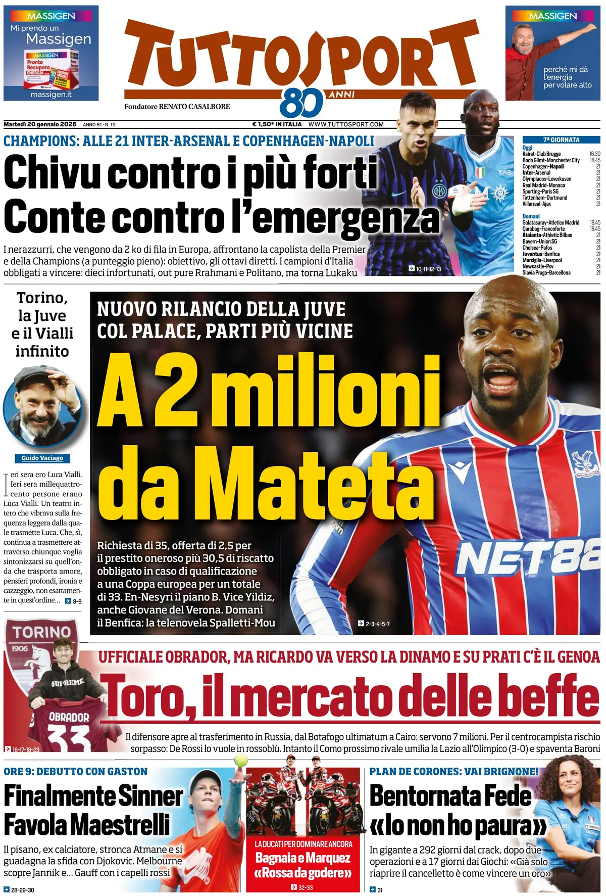Today’s Papers – Inter challenge Arsenal, Juventus close to Mateta