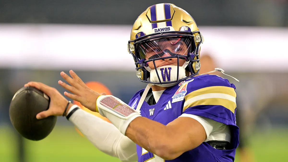 Washington Huskies quarterback Demond Williams Jr. (2) warms up prior to the LA Bowl against the Boise State Broncos at SoFi Stadium in Inglewood, California. The game took place on Dec. 13, 2025.(Jayne Kamin-Oncea/Imagn Images)