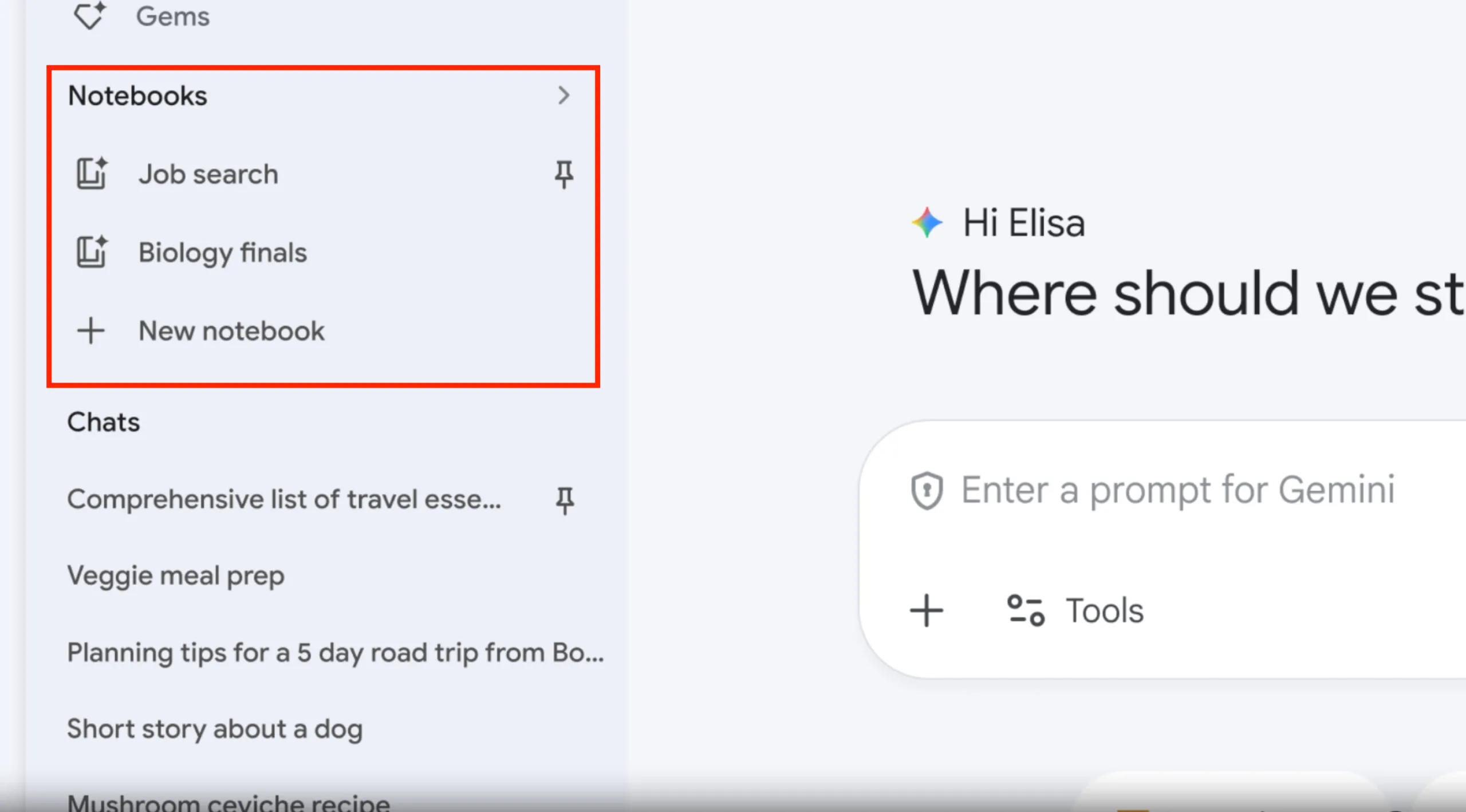 Think of Notebooks as a dedicated project workspace inside Gemini. Instead of starting fresh every time you open the app, you can store your conversations, files, and sources all in one place under a single topic. Gemini then uses everything in that notebook as context when you ask your next question.