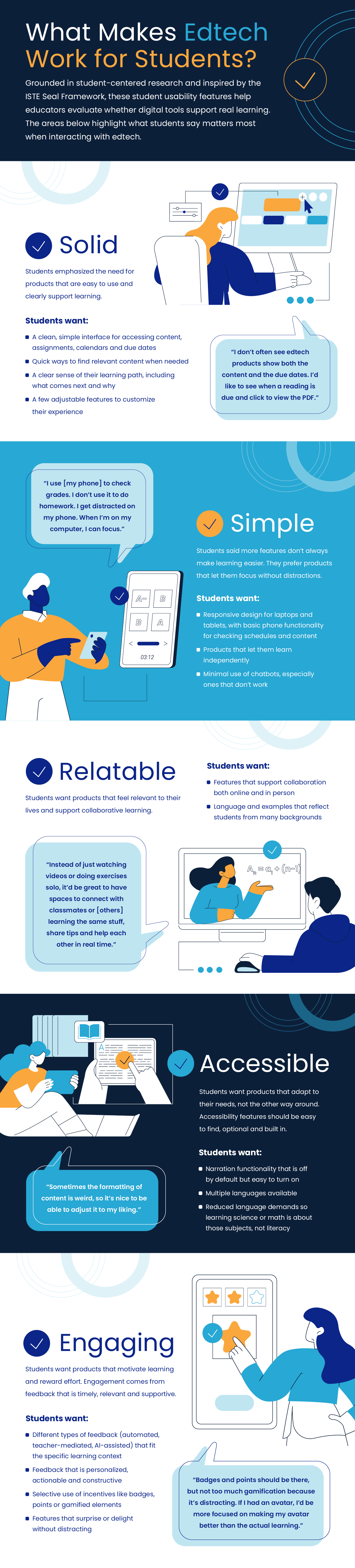 Even the most well-intentioned edtech can fall short if it does not meet students where they are. After several years studying the usability of edtech for teachers, the research team at ISTE+ASCD turned its attention to students — examining how the technical and pedagogical design of digital tools shapes their learning experiences.