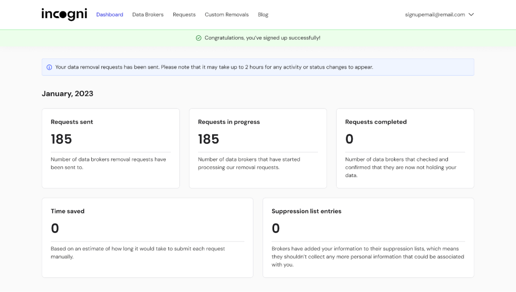 Users love Incogni for its simplicity and automation. After setup, which takes no more than 10 minutes, the dashboard will display all the necessary information without unnecessary, complicated details. You will be able to determine which brokers have been contacted, which requests are pending, and which sites already deleted your data.