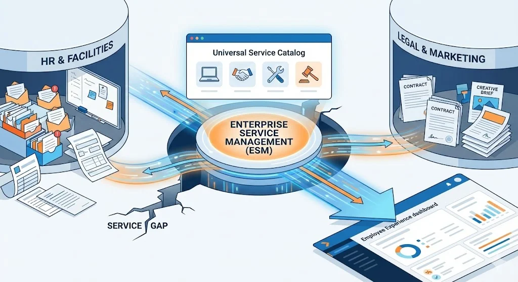 Enterprise Service Management (ESM) applies the principles of IT Service Management to non-IT teams. The idea is simple: every department provides services, even if they don’t traditionally think of themselves that way.