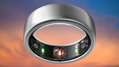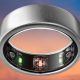 Silver foldable smartphone partially open, showing dual rear cameras with flash on one side and a tall display with colorful wavy abstract pattern and centered front camera cutout on the other