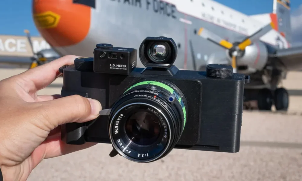 The custom-built camera works by taking a standard roll of 35mm film, which is standardized to take 36 pictures, and exposing a wider section of the film to create a panorama. This reduces the number of pictures on the roll to 19. This is the fifth version of this camera, called the Infidex 176 V, and has everything a standard film camera would have, from an exposure counter, pressure plate for the film, a winder, interchangable lenses, a viewfinder, and a tripod mounting point. It does take a bit of work to assemble, as shown in the video linked below, but the final result is impressive and delivers a custom finished product not easily found or reproducible in off-the-shelf cameras.