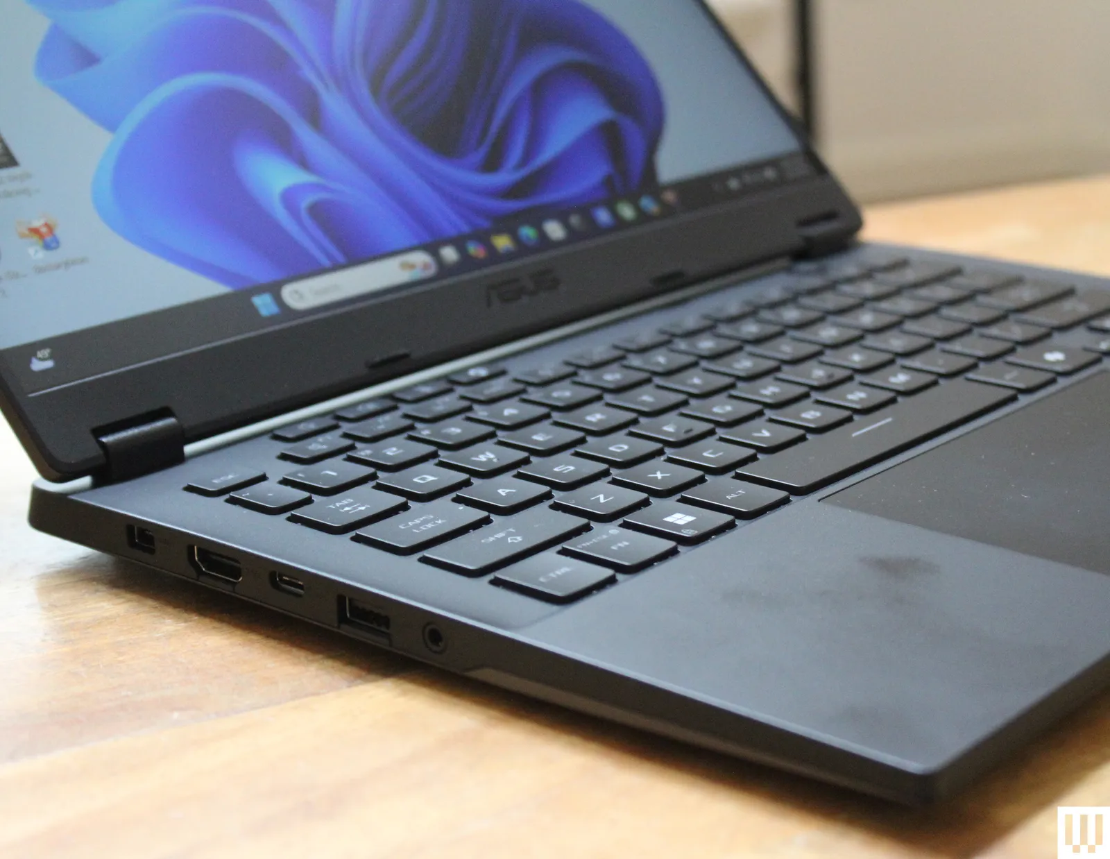 The TUF A14 has a helpful assortment of ports. On the left side, you get a USB-A 3.2 port, USB-C port, HDMI 2.1, headphone jack, and proprietary power jack. You get an additional USB-A and USB-C (USB4) port on the right side, alongside a micro SD card slot. I really like the decision to put the USB4 port on the right side, as it means you can both charge the laptop or connect to an external display from the right side too. Only being able to charge from one side is one of my pet peeves, so good job, TUF A14.