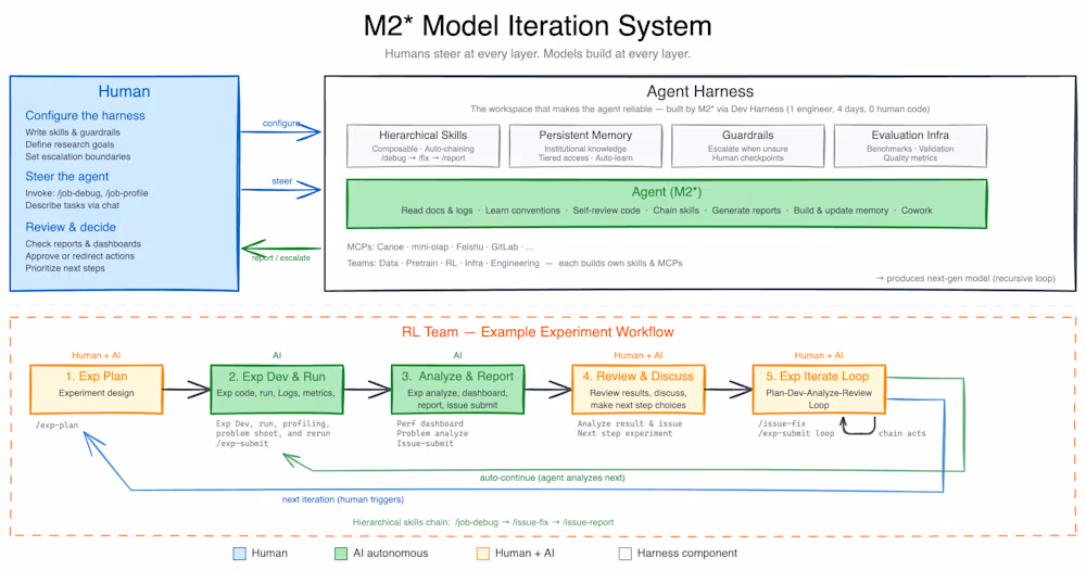 MiniMax M2.7 self-evolving RL research workflow diagram. Credit: MiniMax