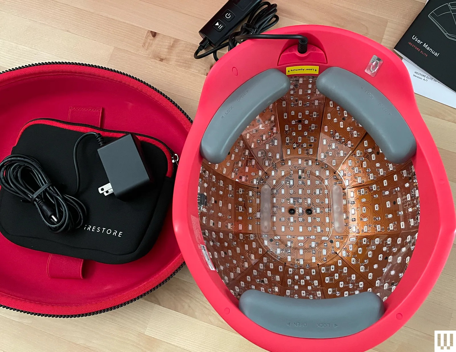 The Elite is iRestore’s top-of-the-line offering and has the most LEDs of the three laser hair-growth systems, with 500 diodes total—that’s 300 lasers and 200 LEDs. The Essential has 51 lasers and 69 LEDs for a total of 120 diodes, while the iRestore Pro has 82 lasers and 200 LEDs for a total of 282 diodes. The Elite was also designed to cover more of the scalp. The Elite requires 12 minutes of daily use, while the Professional and Essential require 25 minutes every other day.
