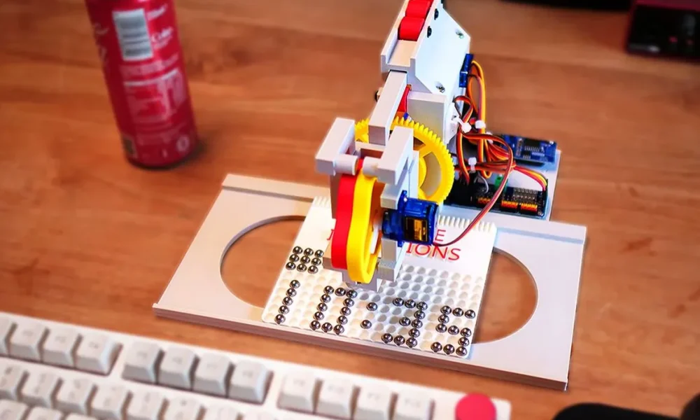While he totally loved the massive marble clock that [Ivan Miranda] built, it is a massive contraption that’s hard to justify as a permanent installation. His take on the concept thus makes it as small as possible, by using a pick-and-place style arm to place the marbles instead. Although the marbles don’t do a lot of rolling this way, it’s decidedly more quiet, and replace the rumbling and click-clacking of marbles with the smooth motion of a robotic arm.