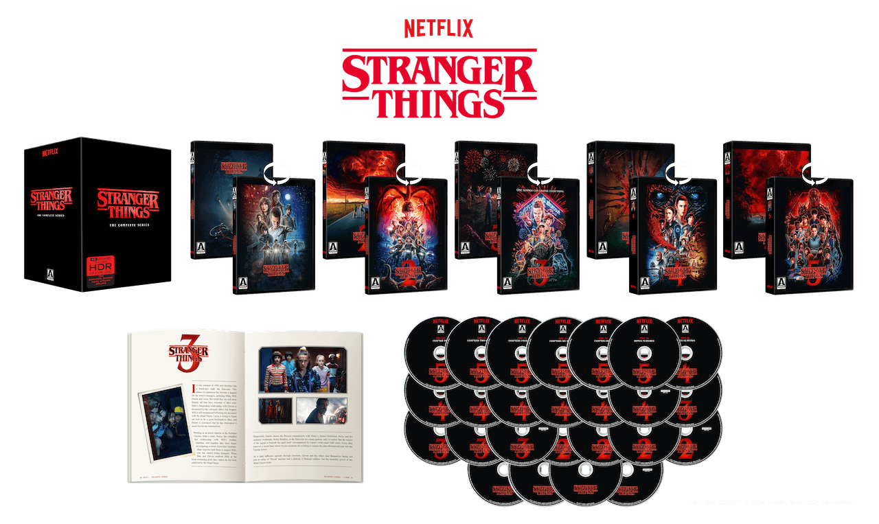 Boutique label Arrow Video has announced a Complete Series set collecting all five seasons/42 episodes of streaming giant Netflix’s nostalgic horror show, Stranger Things. It will be available in four different versions–Special or Deluxe, 4K or HD Blu-ray–all available on July 28, just 13 days after the tenth anniversary of the premiere.