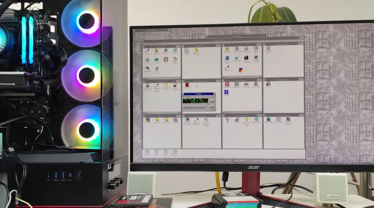 The only real gotcha here is that the AMD AM5 system with Asus Prime X670-P mainboard is one of those boards whose UEFI BIOS still has the ‘classic BIOS’ Compatibility Support Module (CSM) option. With that enabled, Win 3.1 installs without further fuss via a USB floppy drive from a stack of ‘backup’ floppies that someone made in the early 90s. [Omores] also tried it with CSMWrap, but with this USB to PS/2 emulation didn’t work.
